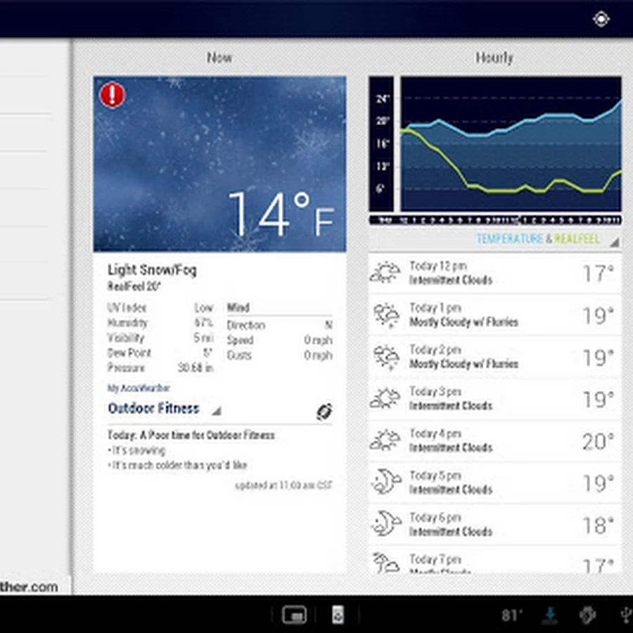 - Current weather conditions update every 15 minutes with the very latest humidity and precipitation percentages, dew point, visibility, UV index, wind speed gusts and direction, times for sunrise and sunset, and RealFeel® – AccuWeather’s exclusive weather forecasting system that analyzes multiple weather factors to determine how the local temperature actually feels.
