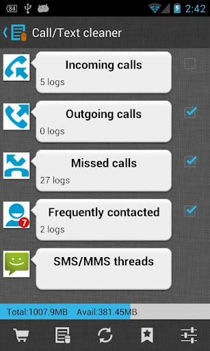- 1 tap to clear calls log (incoming, outgoing, missed, frequently contacted)