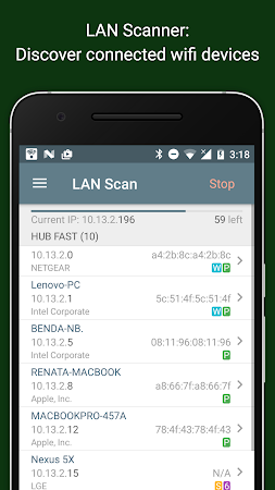 It is equipped with a high-performance wifi device discovery tool, including all the LAN device's addresses, manufacturers and names. Further, Network Analyzer contains standard net diagnostic tools such as ping, traceroute, port scanner, DNS lookup, and whois. Finally, it shows all neighbouring wi-fi networks together with additional details such as signal strength, encryption and router manufacturer to help discovering the best channel for a wireless router. Everything works with both IPv4 and IPv6.