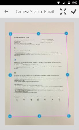 • Create high-quality JPEGs and PDFs of your images and documents—either with the scanner on your printer (if available) or the camera on your mobile device using this app's intelligent mobile scanning feature (including automatic deskewing, image enhancements, and unwanted background cropping).