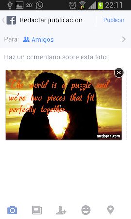 - 30 love card designs. You can import pics from your gallery or even take one with your phone to use as a love card.