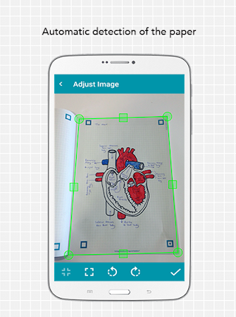 • The app will automatically detect the corners and correct the perspective of the image. Making it appear as if it was taken with a 90 degrees angle.