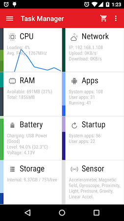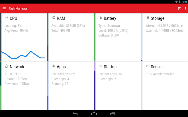 It keep track of your CPU, and clock frequency. It analysis the RAM usage, storage by apps. You can also extract your apk files. Rooted only feature include wake lock list, and logcat / dumpsys reader.Task Manager: monitor CPU, RAM, and batteryhttps://ift.tt/2rw47HNhttps://ift.tt/2I6cFR6https://ift.tt/2FXSK0oKF.Software.HouseKF Software HouseToolsTools1.0.31May 9, 20184.0 and up2.77 M4.2Rated for 3+1,000 - 2,0001.0.29-33