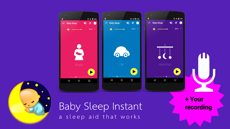 Sleep Baby Instant helps your baby to fall asleep using classic monotonous low frequency sounds proven to be effective by generations of parents: