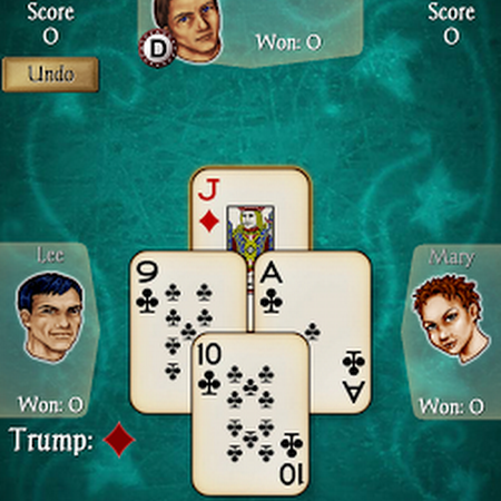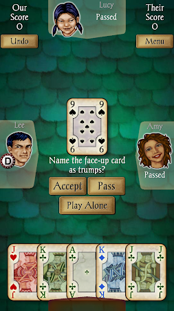 Euchre Free – the popular contract trick-taking card game for 4 players, brought to the Android market by AI Factory – is developed to the same high standard as the rest of our apps with an easy-to-use interface, smooth gameplay on all handsets, clear stylish graphics and individual CPU player "styles". All you'll ever need for Euchre!