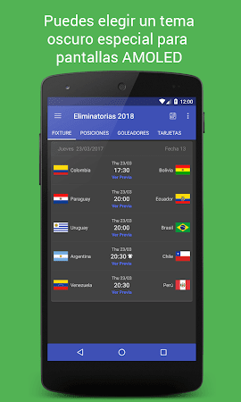 During each match you can see the formations of each team and the complete detail with cards, goals, substitutions, referees and stadiums.