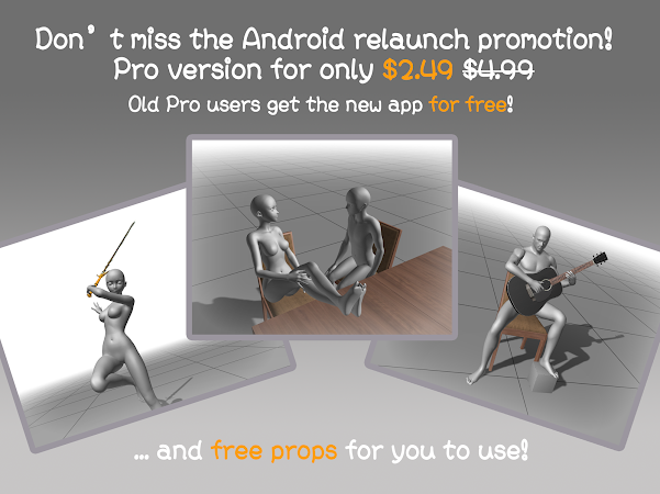 No need to use a wooden mannequin that is limited in its flexibility, or buy expensive 3D desktop software. Magic Poser is extremely intuitive, very affordable, and light-weight. Start creating poses within minutes for any artwork in your imagination on your mobile devices today!