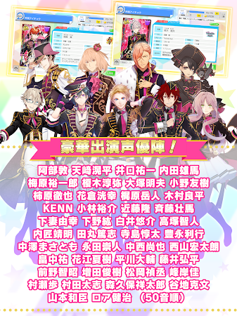 阿部敦/天﨑滉平/井口祐一/内田雄馬/梅原裕一郎/榎木淳弥/大塚明夫/小野友樹/柿原徹也/花倉洸幸/梶原岳人/木村良平/KENN/小林裕介/近藤隆/斉藤壮馬/下妻由幸/下野紘/白井悠介/高塚智人/内匠靖明/田丸篤志/寺島惇太/豊永利行/中澤まさとも/永田崇人/中西尚也/西山宏太朗/畠中祐/花江夏樹/平川大輔/藤井弘平/前野智昭/増田俊樹/松岡禎丞/峰岸佳/村瀬歩/村田太志/森久保祥太郎/谷地克文/山本和臣/ロア健治 (50音順)