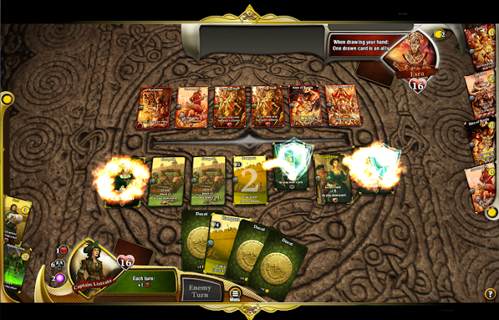 You hold all the cards so build your decks and go to war! Fight on the battlefield with knights and beasts, behind the scenes with rumors and conspiracies, or go right for their wallets with embargoes and predatory lending! Let your style dictate how you want to win as you collect cards and heroes that continuously change how you can play the game.