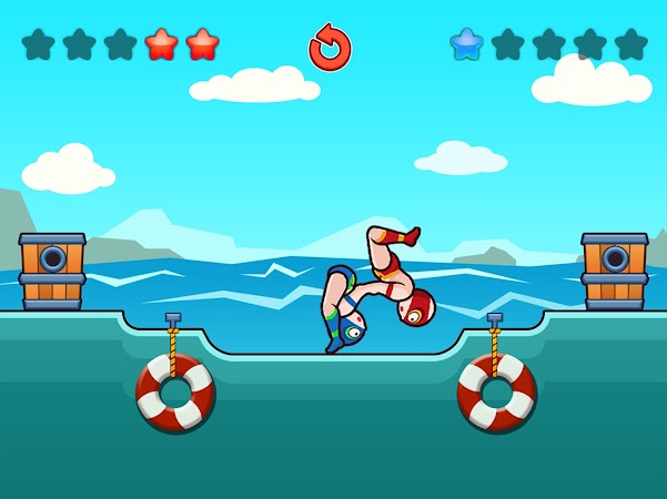 You could drive your legs by clicking the button on the screen. The funny point of the game is that people could rollover in the air hand in hand, and try to catch the chance to make you oppeonent hit the obstacle.Play as a wrestle.Jump and make a funny joke .